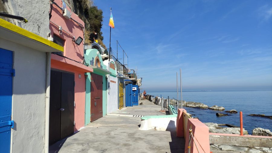 Scendendo lungo la scalinata con le due rampe simmetriche, si arriva alla spiaggia più frequentata della città. Lunga, stretta e rocciosa è protetta dagli scogli poco distanti da riva.