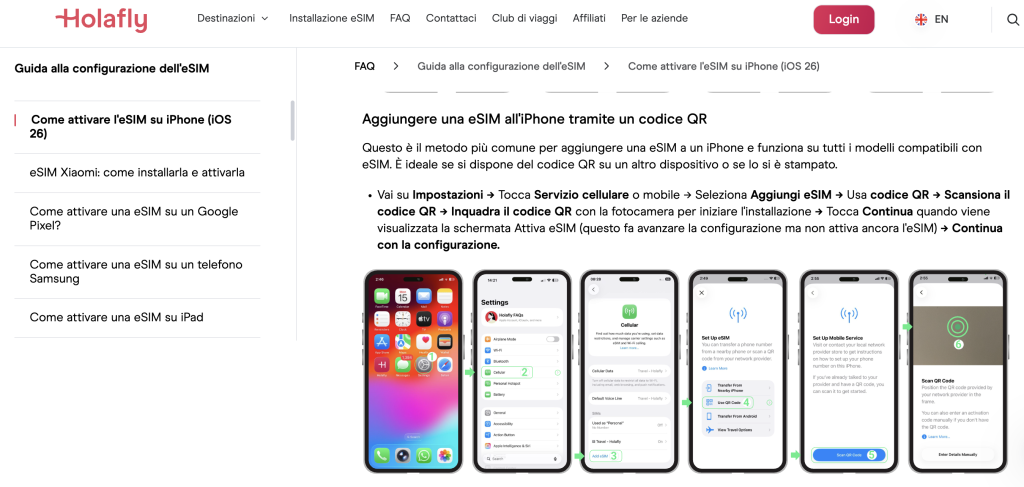 L’attivazione della eSIM Holafly è rapida e intuitiva: dopo l’acquisto, il piano dati viene inviato direttamente via email e può essere installato sul dispositivo in pochi minuti, senza dover sostituire la SIM fisica o recarsi in negozio.